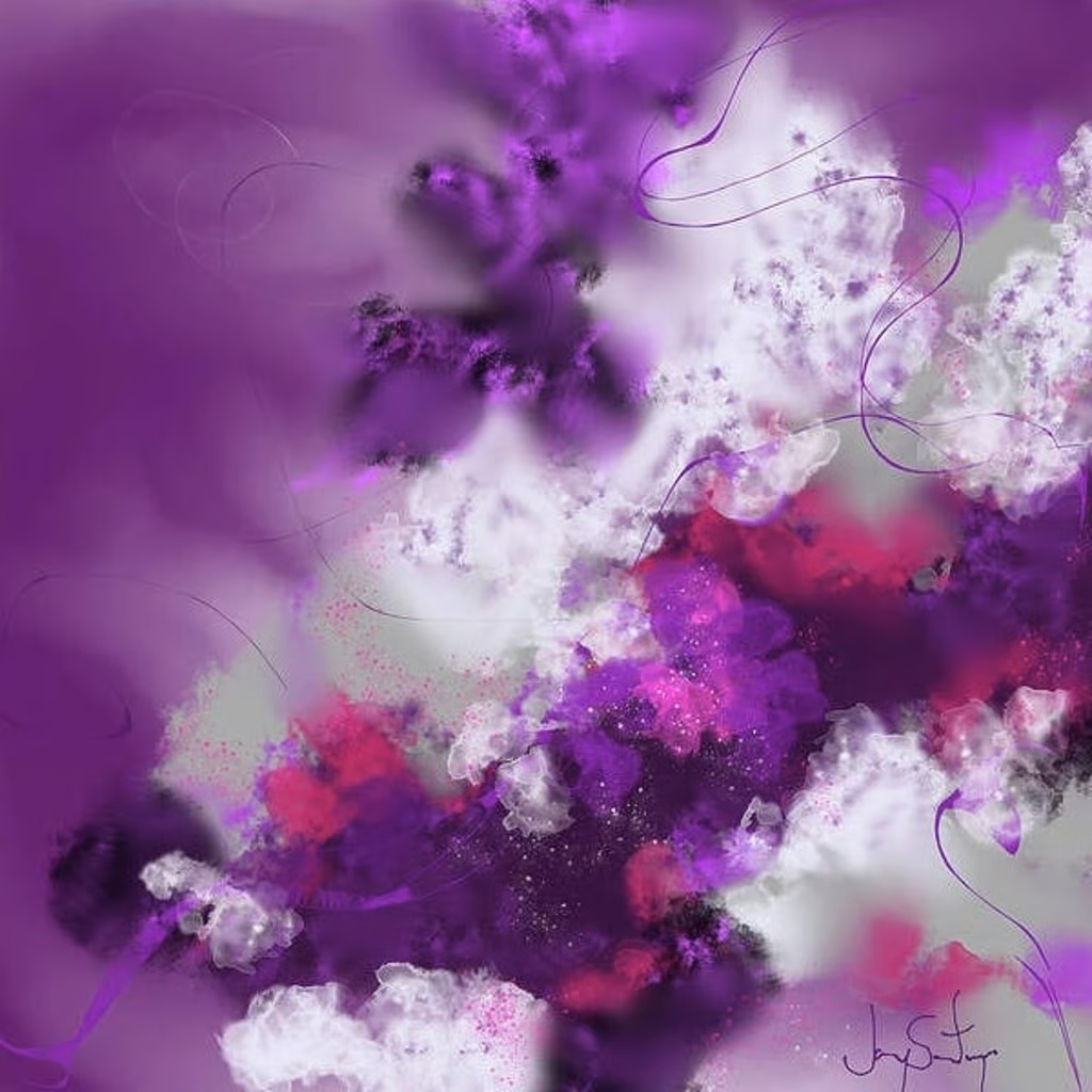 A dreamy landscape of purples and magentas this abstract piece invites you to get lost in its mystical beauty. Soft swirling strokes of lavender and fuchsia create a sense of tranquility while bold splashes of magenta add a touch of excitement. A must-have for any art lover looking to add a touch of whimsy to their collection. The dimensions of this art print is 12 X 12 and includes a white mat.