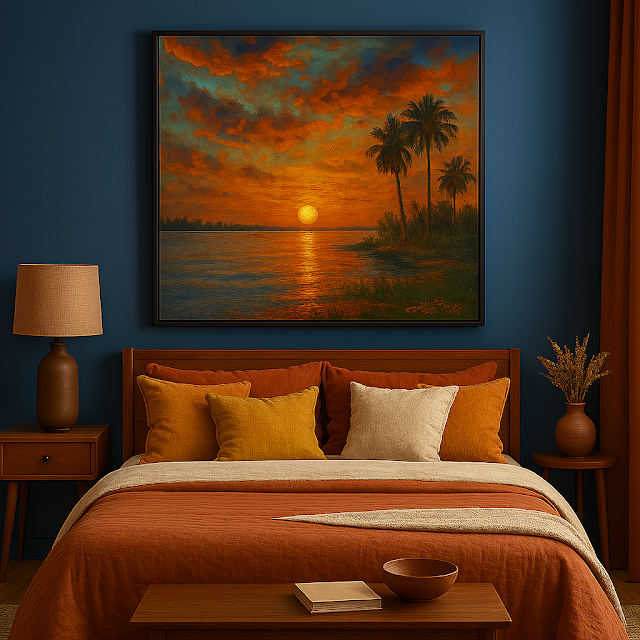 This piece evokes the warmth and wonder of coastal evenings in Florida, where nature’s palette turns bold and the air hums with quiet magic. Whether viewed in solitude or shared conversation, Floridian Sunset invites reflection, nostalgia, and a deep breath of calm.