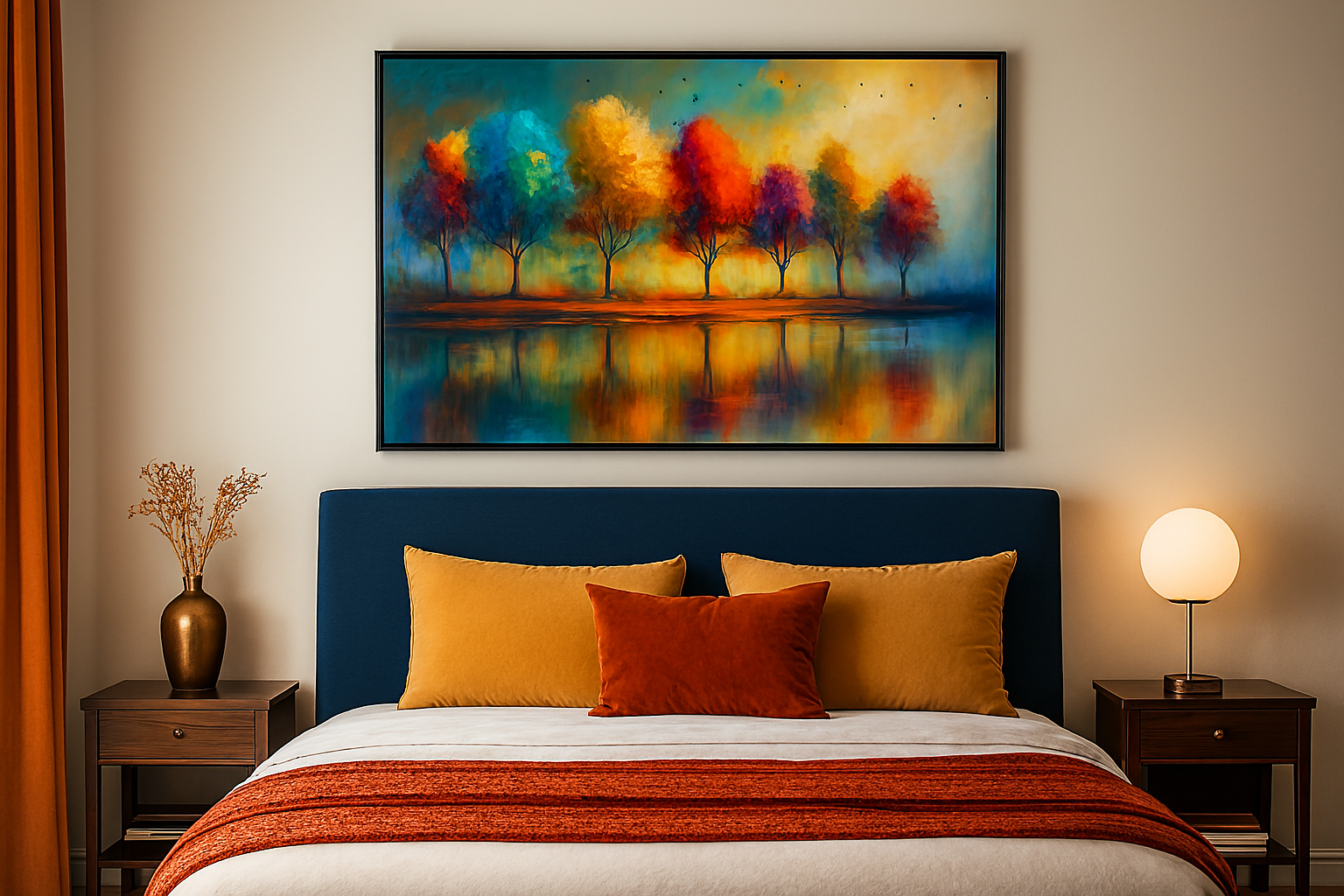Perfect for modern interiors, gallery walls, or nature-inspired decor, this piece evokes peace, wonder, and emotional warmth. Its bold palette and mirrored symmetry make it a standout choice for collectors and art lovers seeking vibrant wall art with depth and soul.