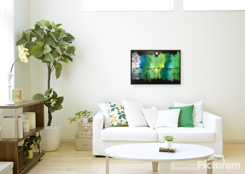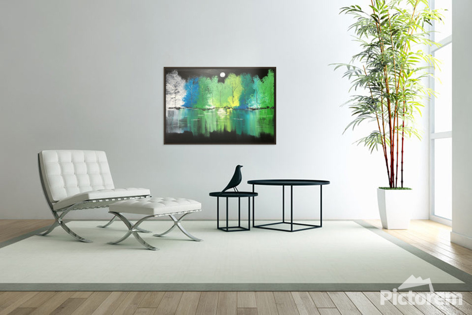 Experience the tranquility of nature with "The Neon Lake Art Print." This stunning artwork features vibrant green and blue trees that beautifully reflect off the serene surface of a shimmering lake. The ethereal quality of this piece draws viewers in, inviting them to escape into a world of peaceful landscapes.