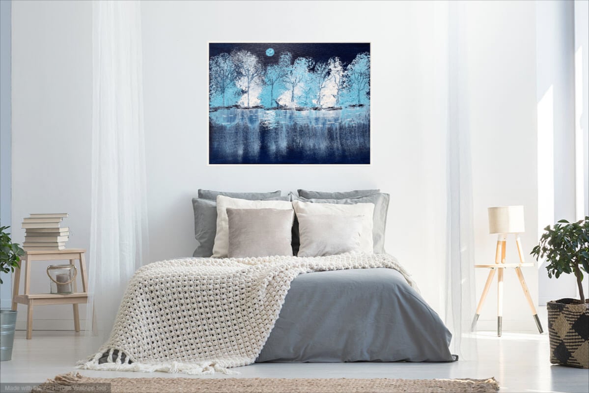 This is a beautiful landscape art print titled "Winter At Blue Moon Lake" by artist Joey Santiago. This is a larger 24" X 36" art print. Printed on beautiful Coated Matte Paper. It sells for only $80 and ready to frame. Shipped directly from me, free of charge.