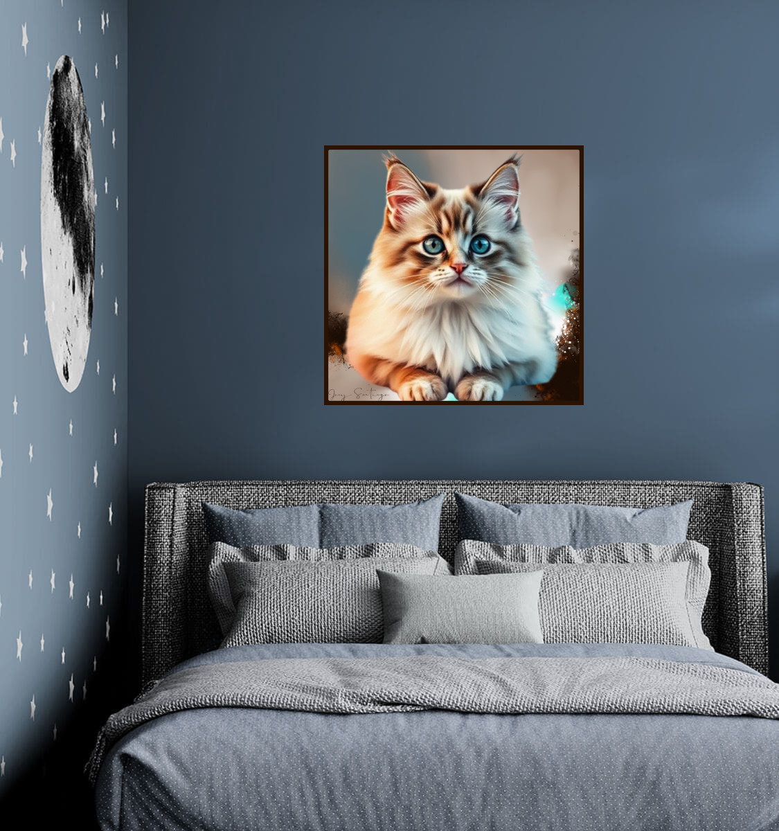 Soft, soulful, and striking—this modern art piece captures the gentle spirit of the Ragdoll cat in a swirl of dreamy hues and minimalist lines. With its deep blue eyes and flowing fur rendered in abstract form, it’s perfect for cat lovers and design enthusiasts alike. 🐾🖼️