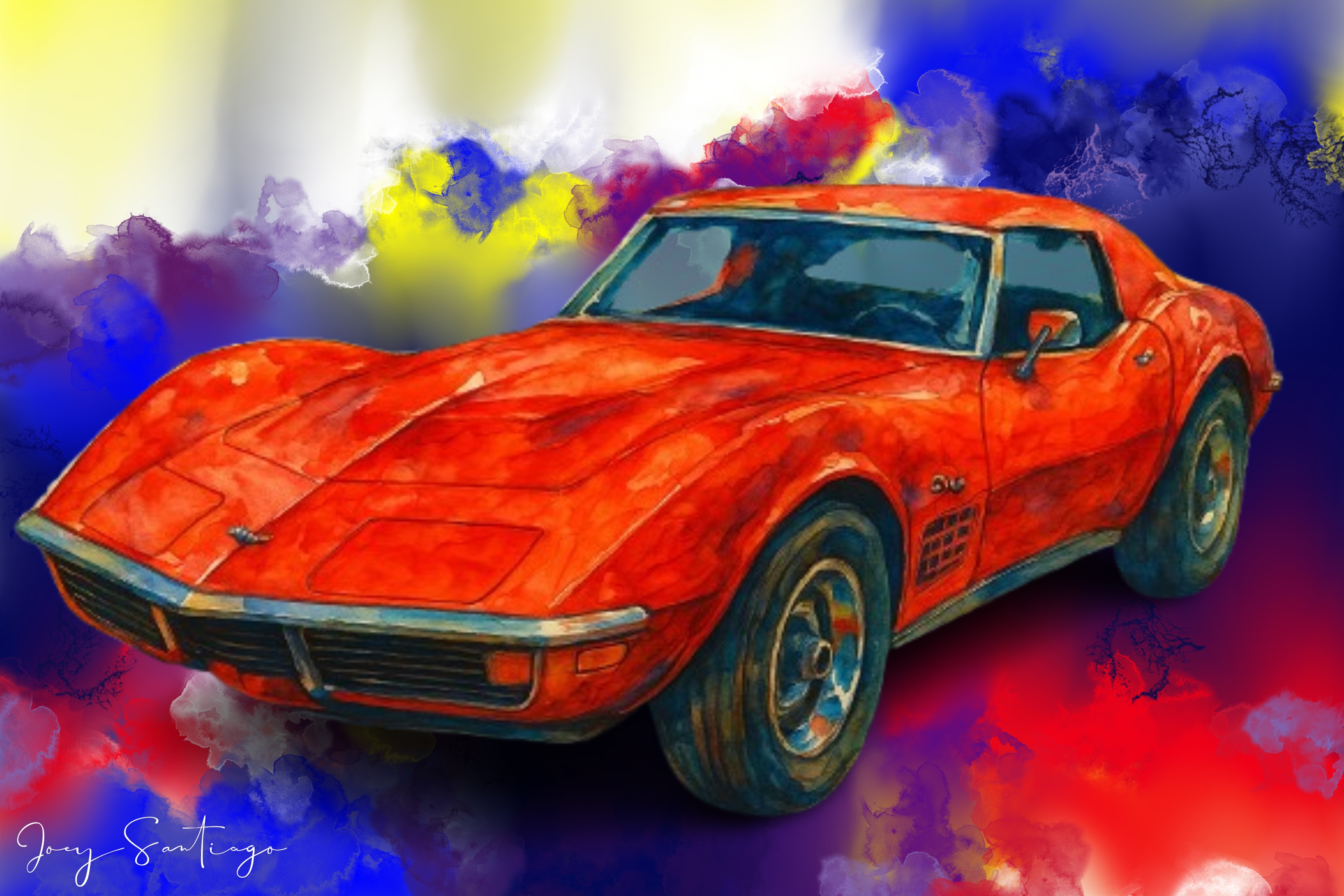 Capture the spirit of a legendary era with this stunning abstract art print featuring a classic 1960s Corvette Sting Ray. Rendered with expressive strokes and vibrant colors, this piece isn't just a car print—it's an artistic interpretation that blends the iconic lines of a bygone automotive era with the dynamic freedom of abstract expression. Perfect for enthusiasts who appreciate both vintage design and modern art.