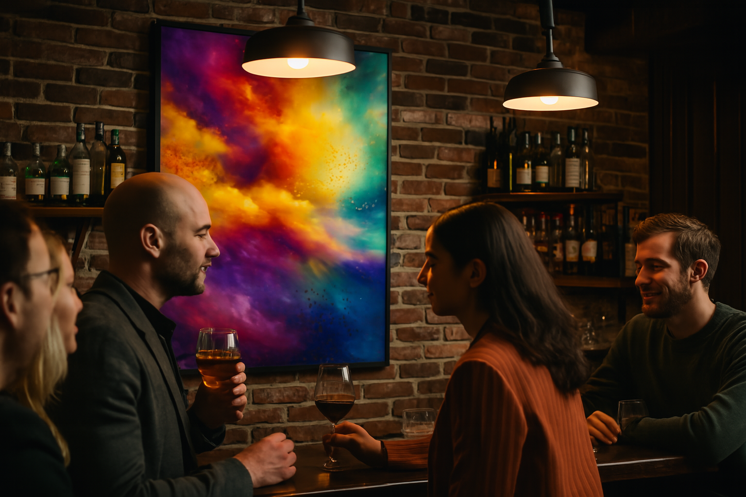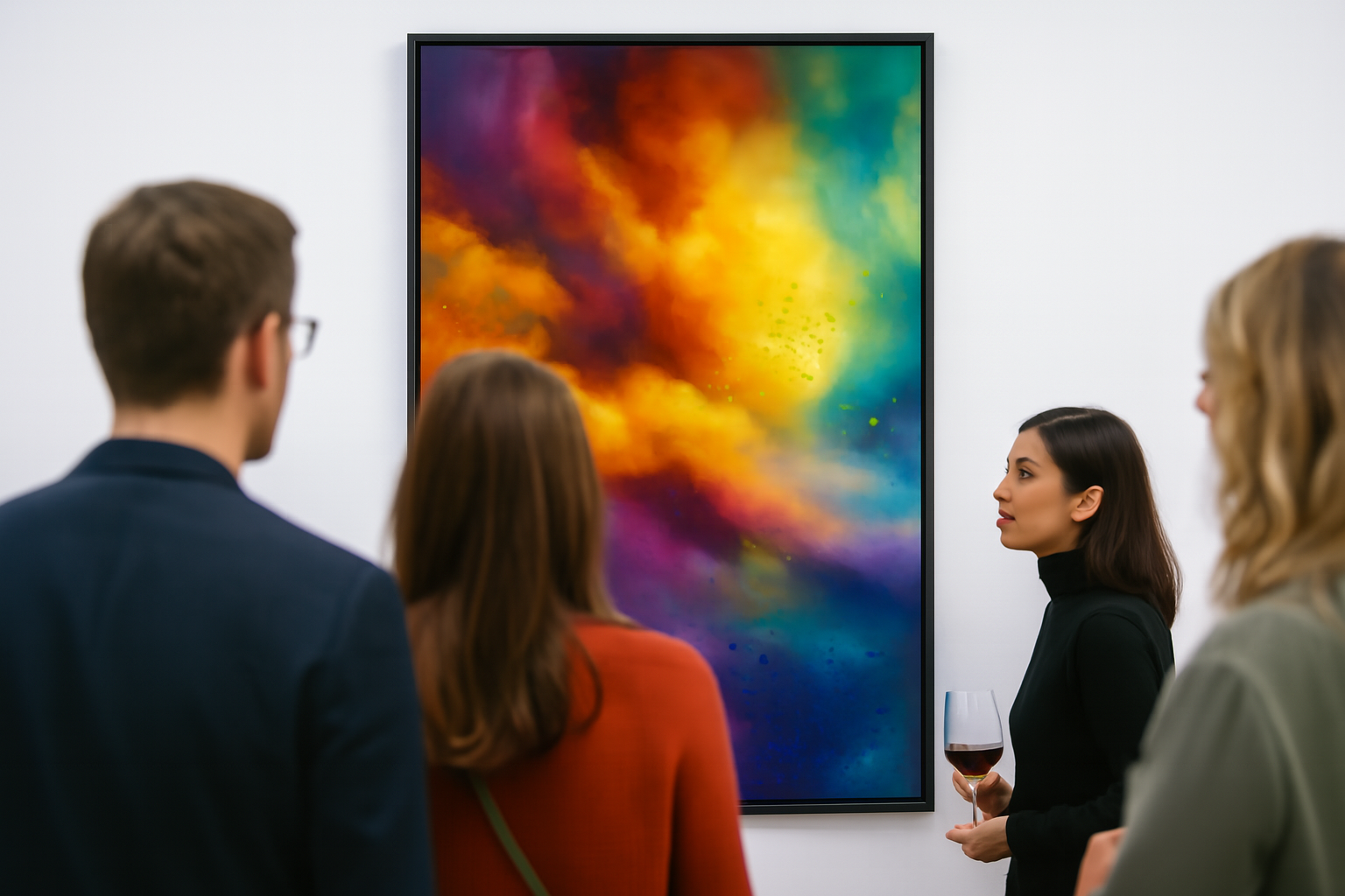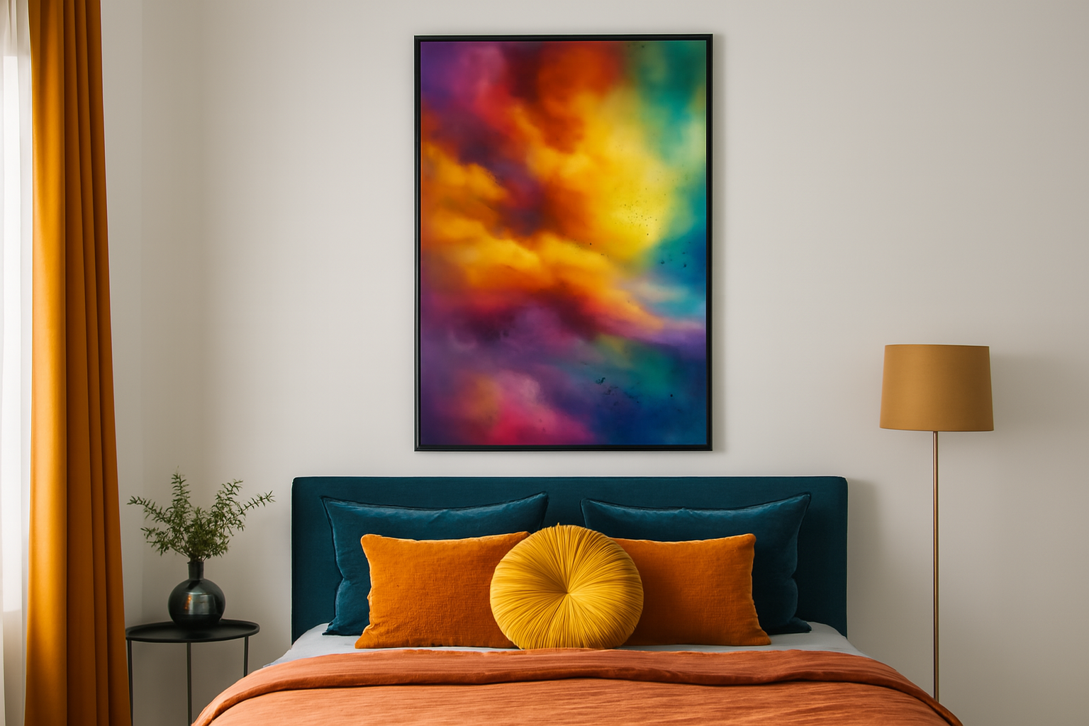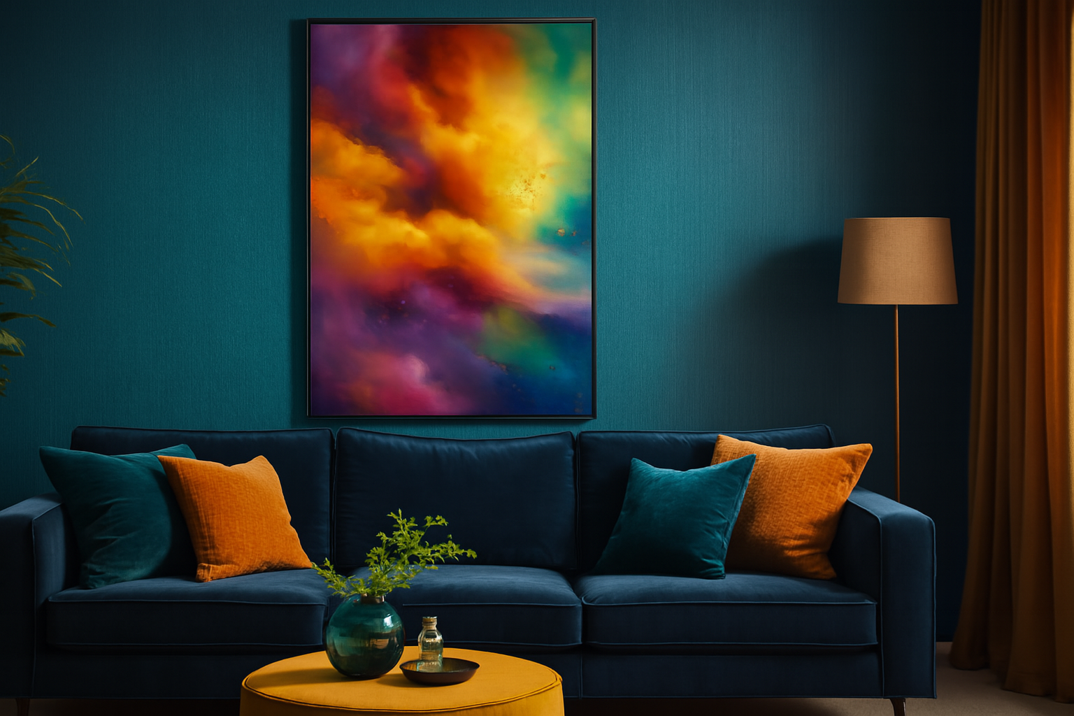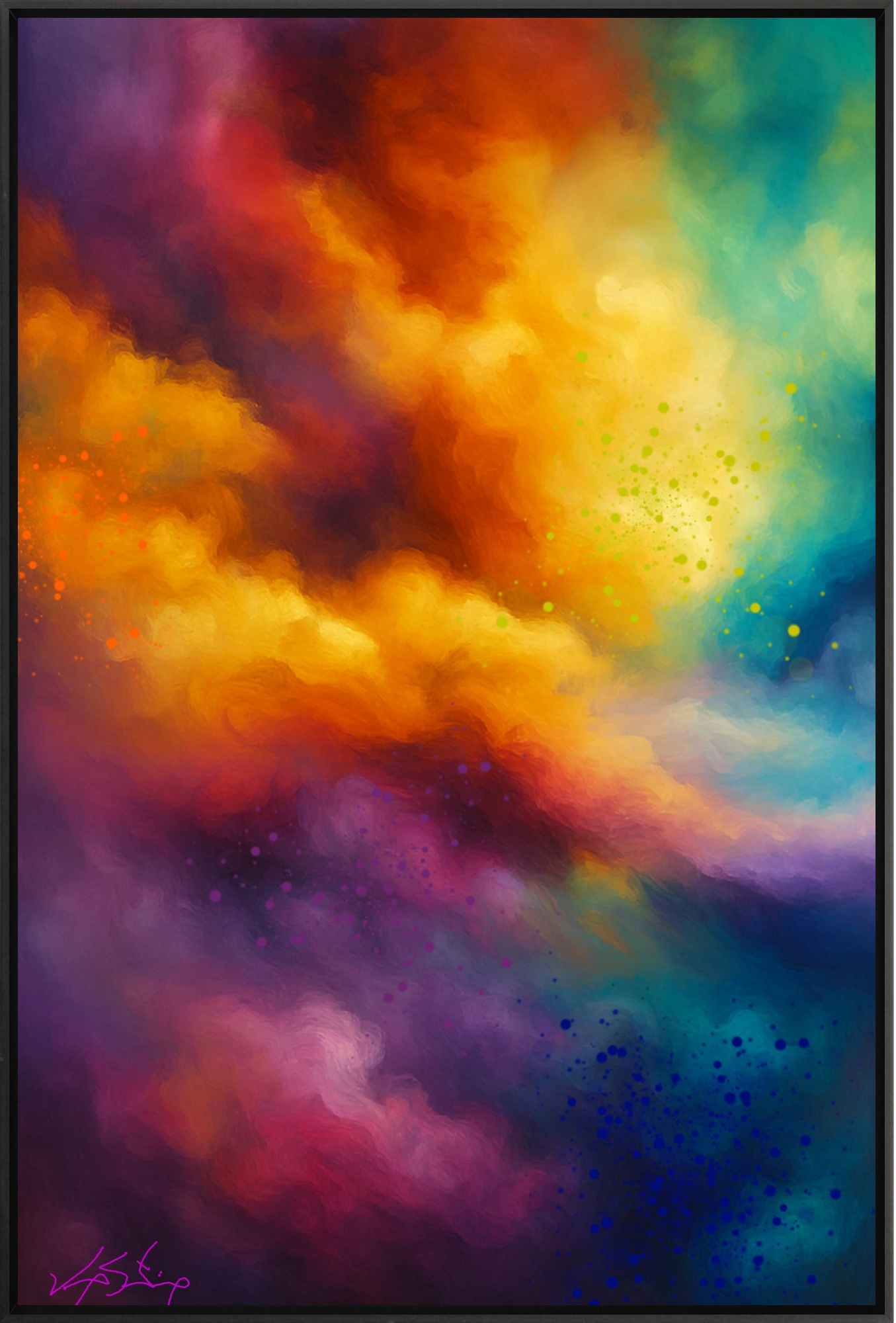 A dynamic display of swirling colors creates a vibrant and ethereal atmosphere. The image features a blend of warm and cool tones, evoking a sense of mystery and wonder.