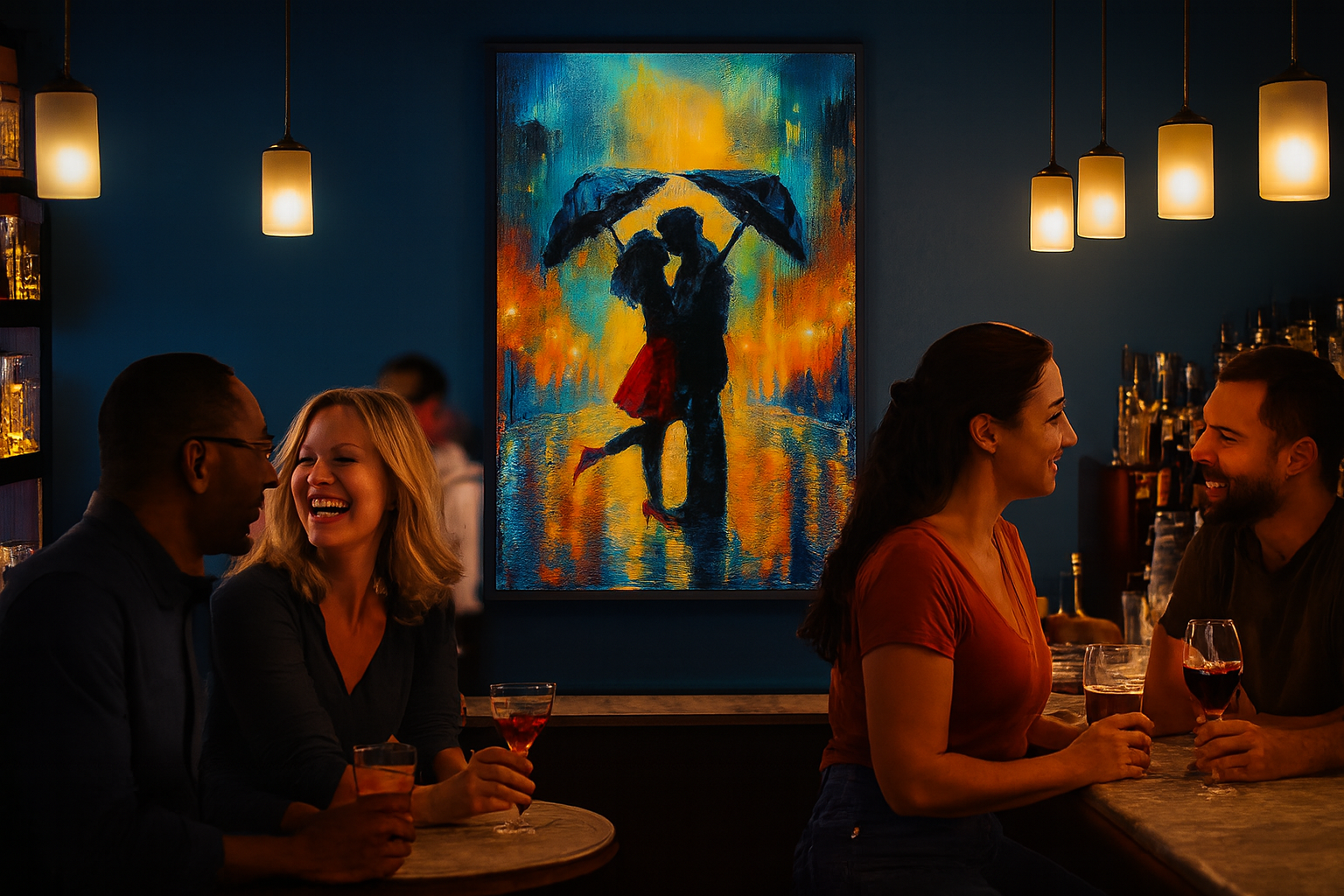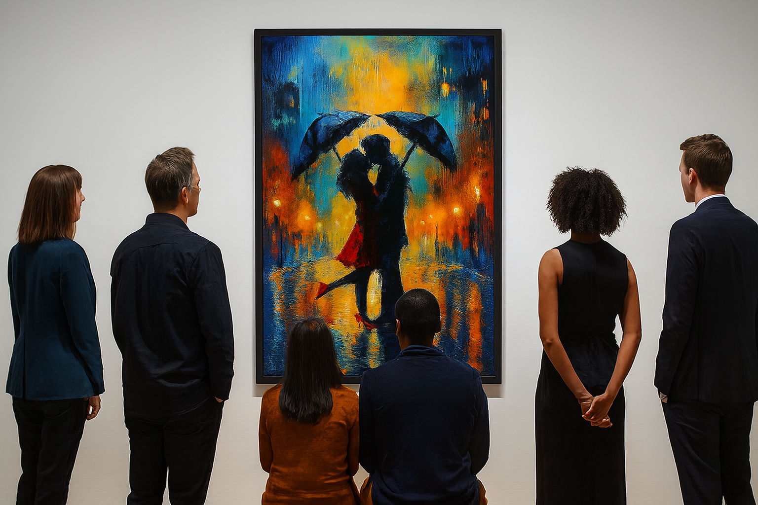 This piece captures a suspended instant—where time halts, the storm hushes, and love becomes the only motion.