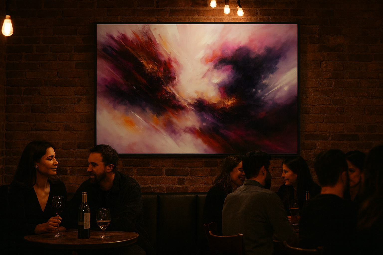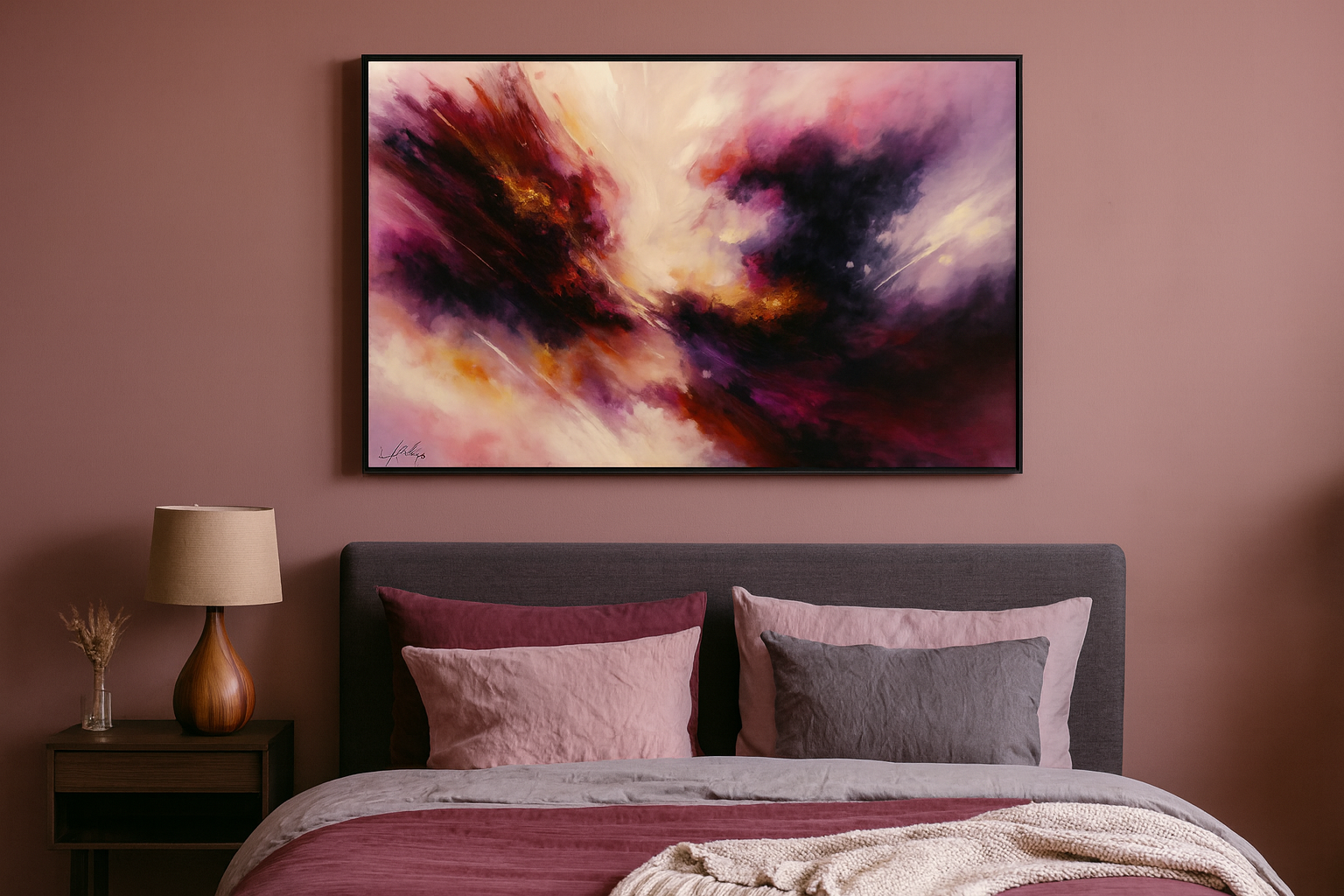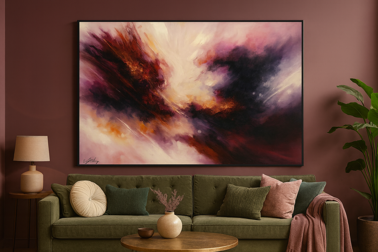 This expressive abstract piece is perfect for collectors who love dynamic modern art, cosmic themes, and vibrant color palettes. Its dramatic composition makes it an eye‑catching focal point for living rooms, creative studios, offices, and contemporary gallery walls. Whether viewed as a fiery nebula, an energetic burst of emotion, or a symbolic moment of transformation, this artwork invites endless interpretation and visual impact.